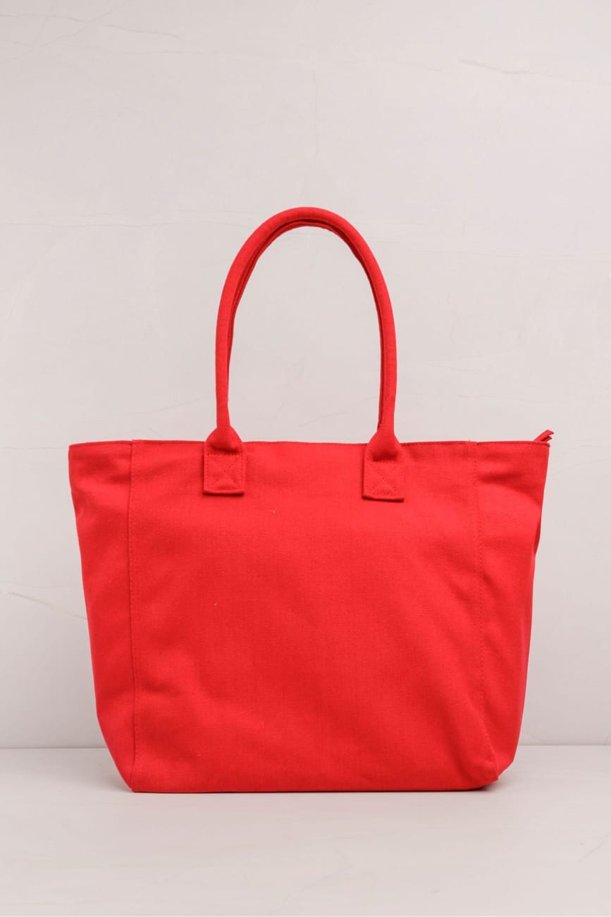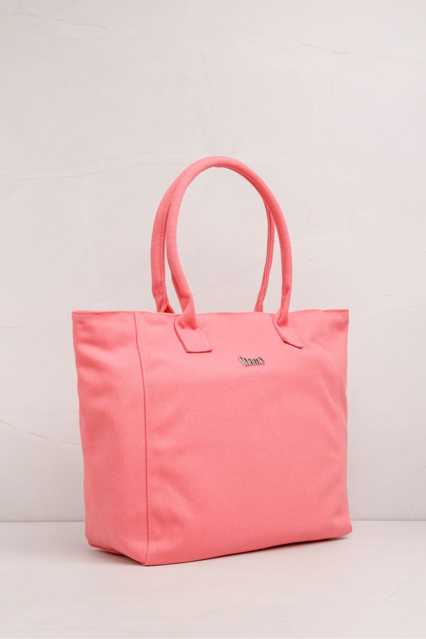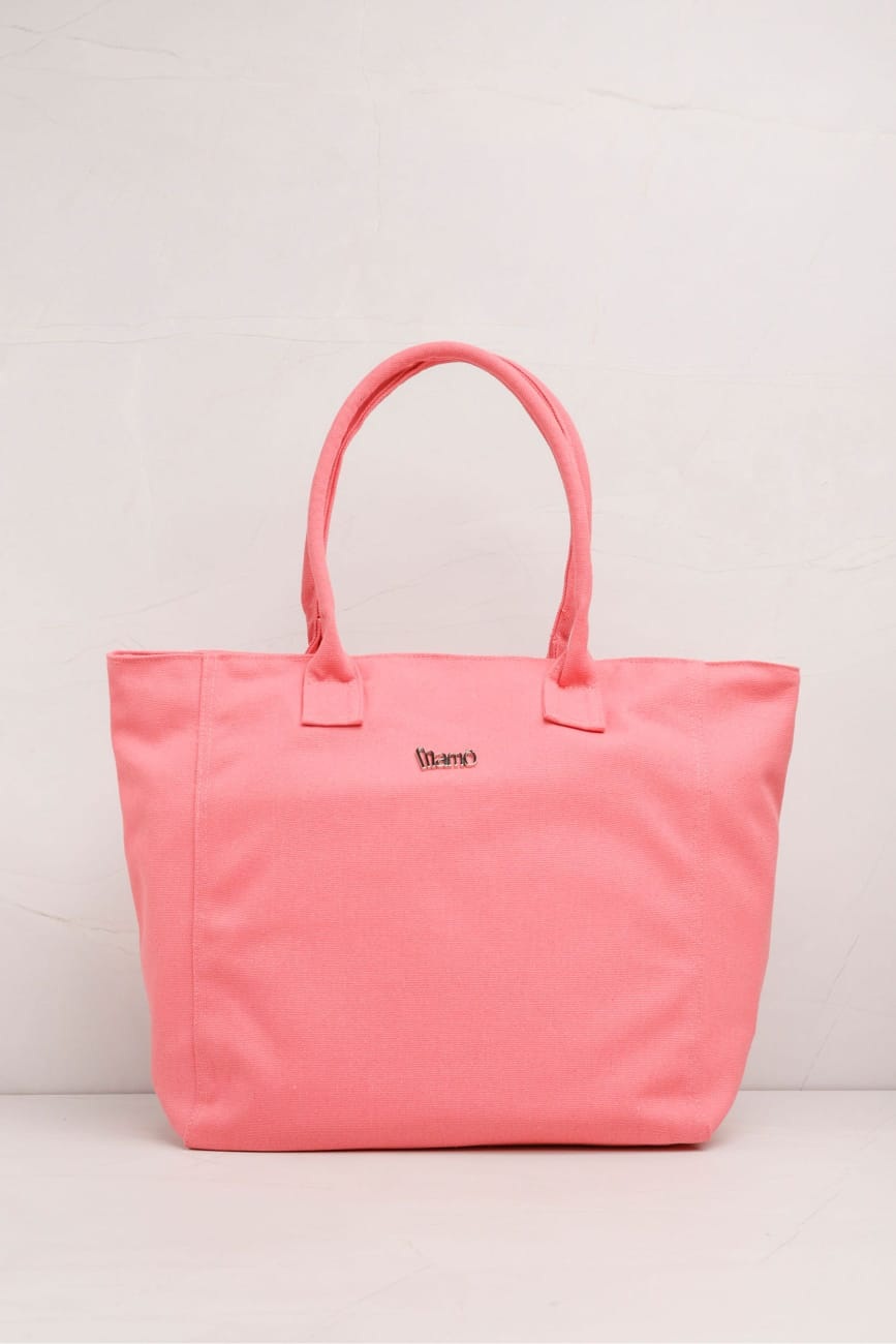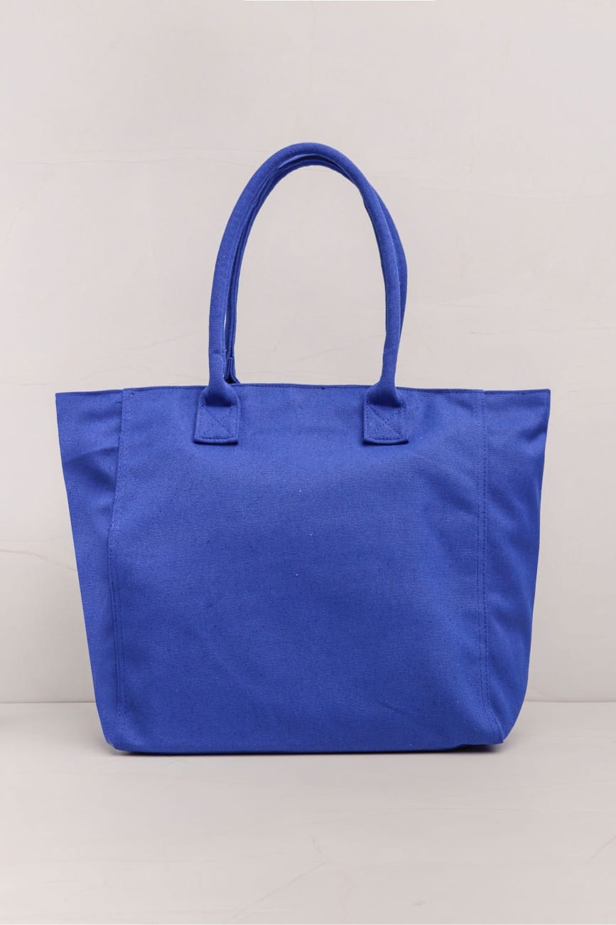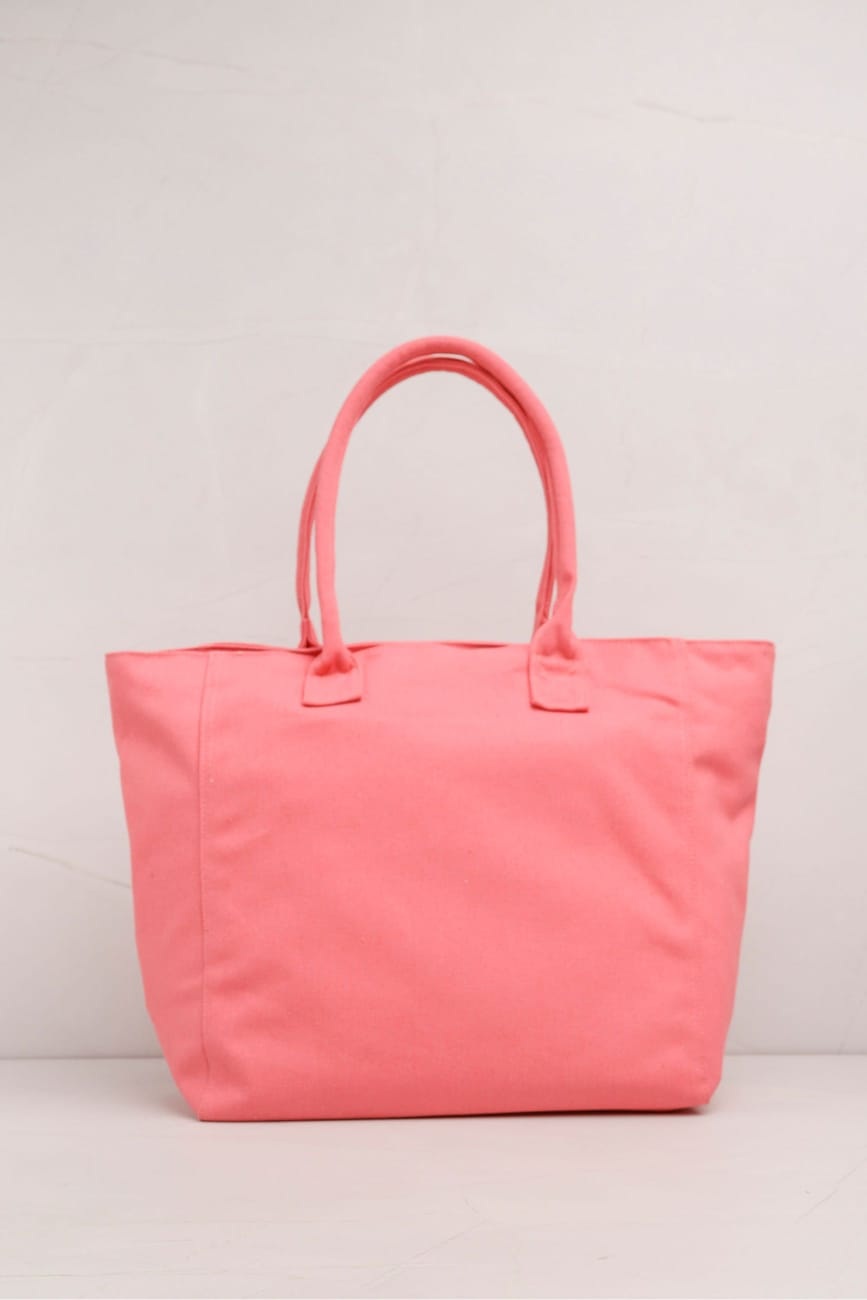 Bolsa de lona espaçosa e resistente, com fechamento em zíper, alça dupla de ombro e mini carteira combinando. Ideal para o dia a dia e passeios!