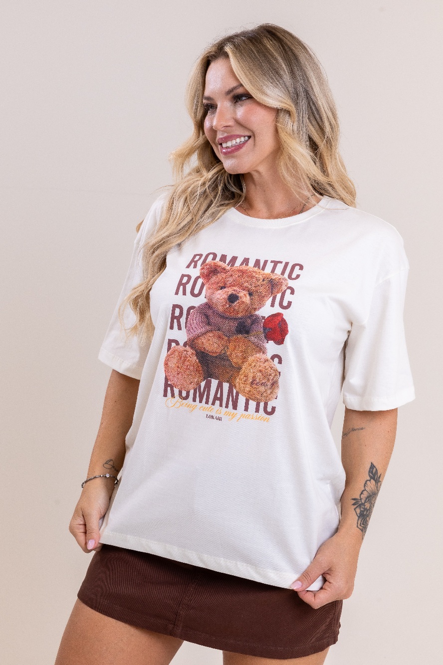Camiseta com estampa encantadora de Urso e Flor. Conforto e estilo para o seu dia a dia.