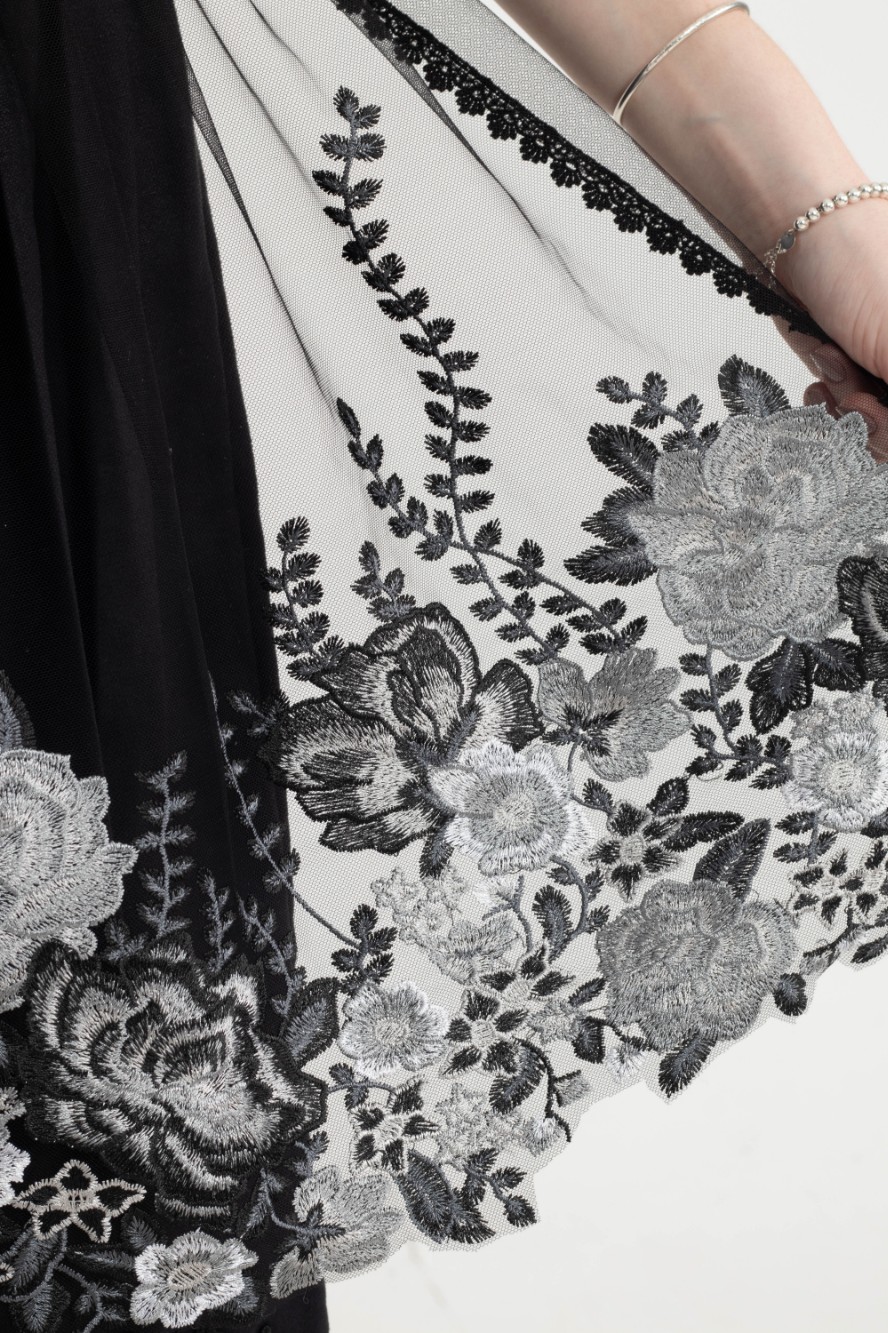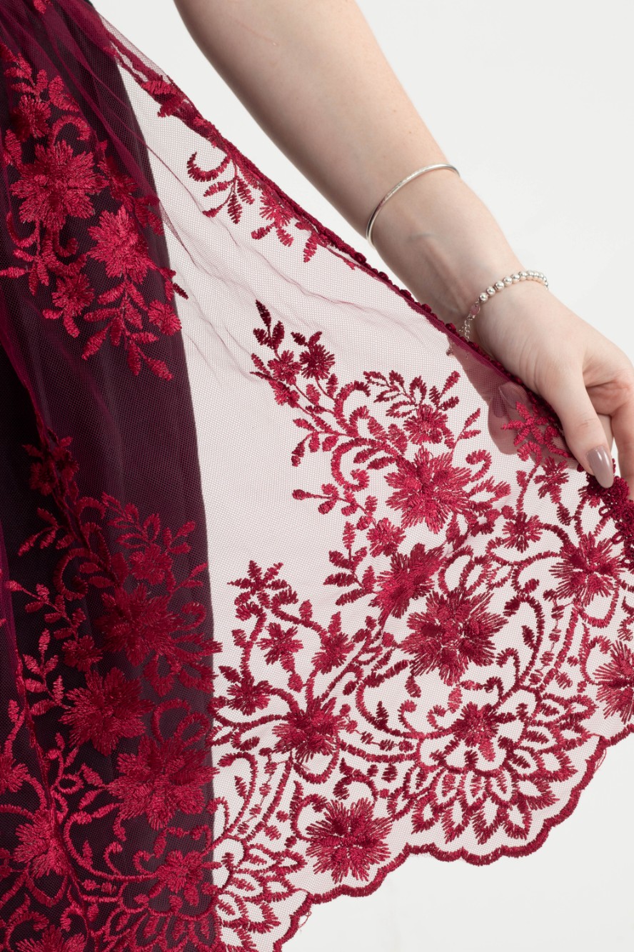 Confeccionado com delicada renda de alta qualidade, possui uma faixa de tafetá que permite um ajuste elegante e confortável na cintura.