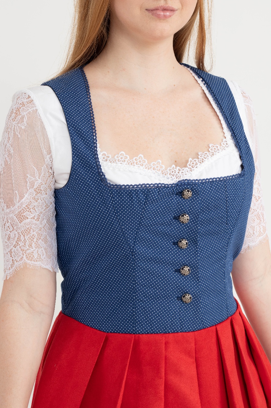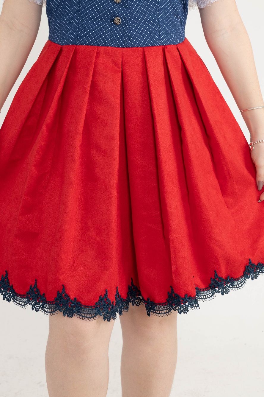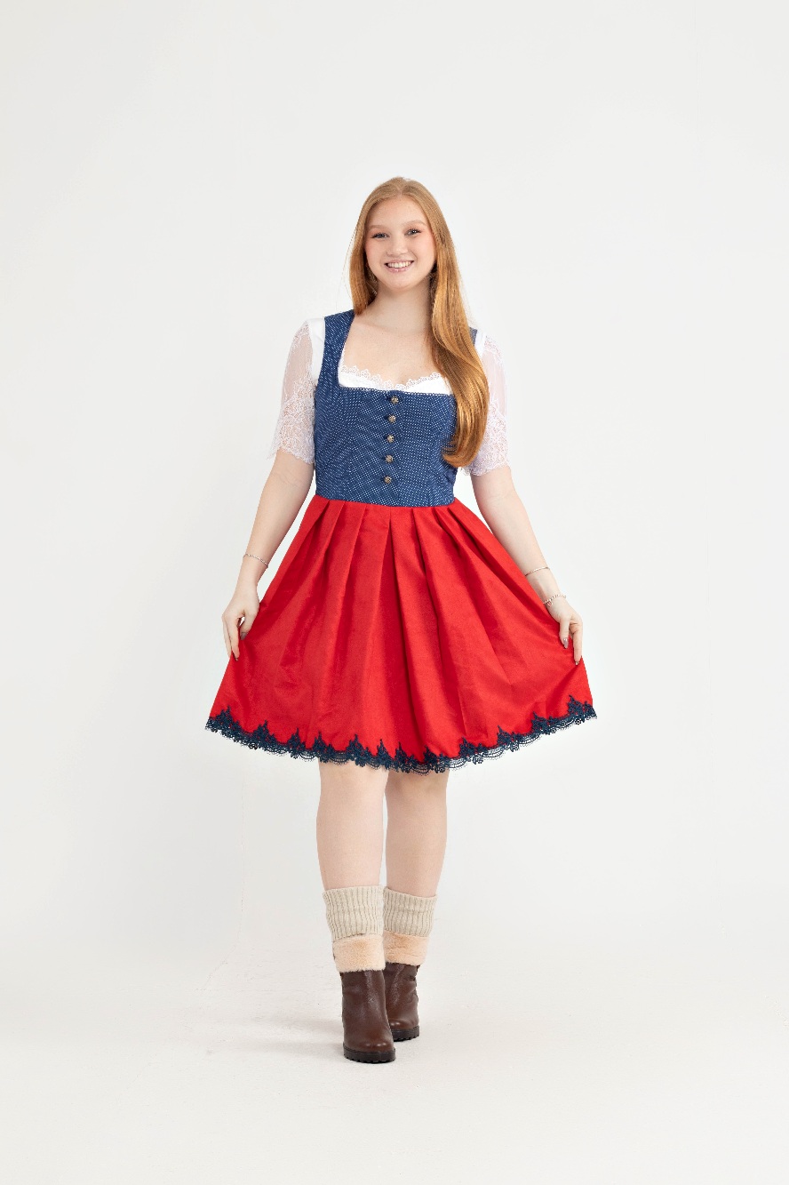 O Vestido Dirndl é um traje típico alemão confeccionado em algodão e camurça de alta qualidade, oferecendo conforto e elegância.